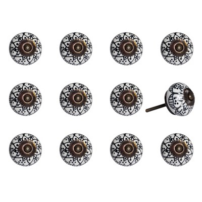 HomeRoots Set of Eight Black And White Ceramic And Metal Drawer Pull Knobs