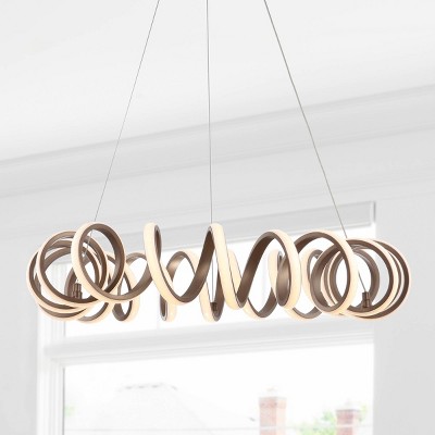 JONATHAN Y 24" Metal Cursive Adjustable Spiral Ceiling Light (Includes Energy Efficient Light Bulb) Brown: ETL Listed, Integrated LED