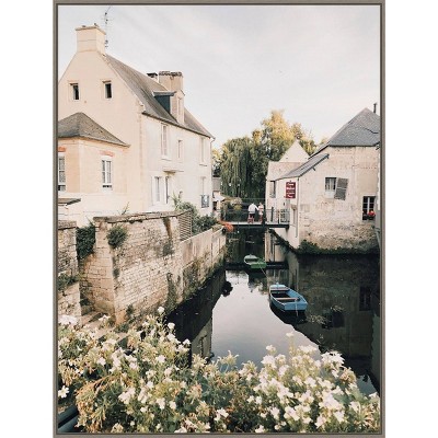 32" x 42" Bayeux by Krista Broadway Framed Canvas Wall Art Print - Amanti Art: European Canal Scene