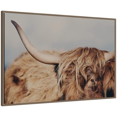 Kate and Laurel Highland Cow No. 4 Close by Laura Evans Framed Canvas Wall Art Print, 41x28, Dark Gold