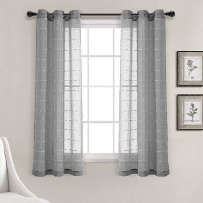 Set of 2 Farmhouse Texture Grommet Sheer Window Curtain Panels - Lush Décor