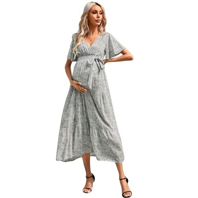 Clearlove Women's V-Neck Maternity Maxi Dress Flowy Dress for Photoshoot Maternity Dress