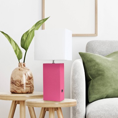 21" Lexington Leather Base Modern Home Decor Bedside Table Lamp with USB Charging Port and Fabric Shade - Lalia Home