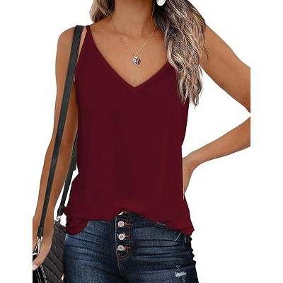 Zeagoo Womens V Neck Camisole Tank Top Strap Sleeveless T Shirt Casual Loose Vest Blouse Dark Red-Dark Red-S