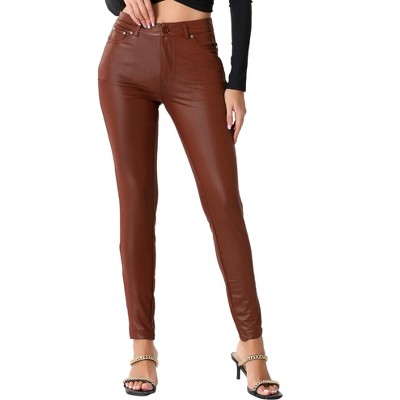 Allegra K Women's Faux Leather High Waist Stretch Slim Fit Motorcycle Legging Pants