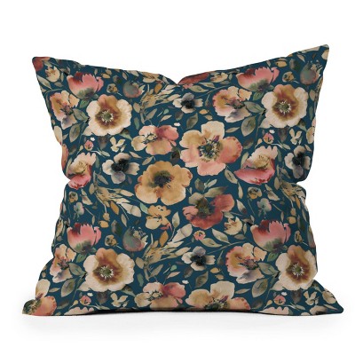 16"x16" Ninola Design Artistic Poppies Midnight Square Throw Pillow Blue - Deny Designs: Abstract Pattern, Removable Cover, Indoor Decor