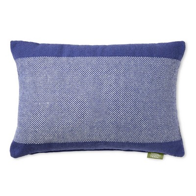 HomeRoots 12" X 20" Ivory and Blue Striped Cotton Blend Throw Pillow With Texture