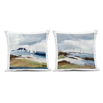 Stupell Industries Nautical Sea Vessels Beach View 2pc Outdoor Decorative Throw Pillow Set, 18 x 18 Each