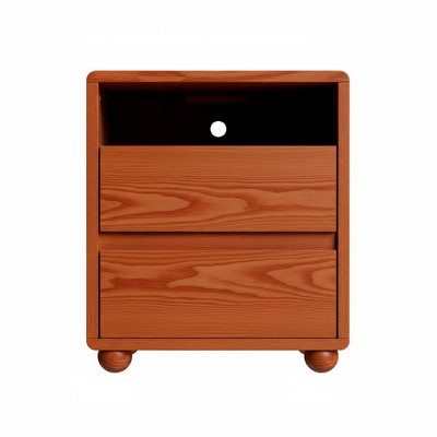 Gulches 20inch Modern Walnut Nightstand with 2 Drawers Shelves Charging Station Solid Wood Mid Century Bedside Table for Bedroom Living Room