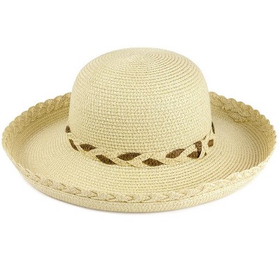 Anna-Kaci Packable Crochet Straw Bucket Hat with Two-Tone Design Lightweight Summer Sun Hat for Beach Travel Hiking Outdoor Use