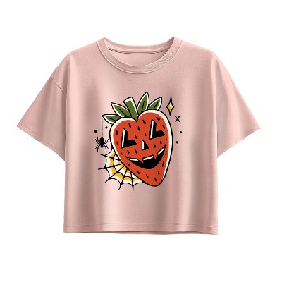 Girls' - Instant Message - Strawberry Skull Short Sleeve Boxy Graphic T-Shirt