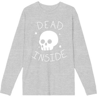 Halloween Cartoon Skull Dead Inside Crew Neck Long Sleeve Heather Gray Adult Tee