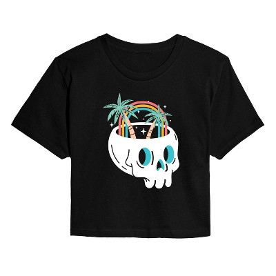 Women's Instant Message Tropical Floral Skull Oversized Graphic T-Shirt - Black - Medium
