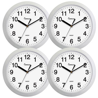 Impecca 12 Inch Quiet Movement Wall Clock - Silver, 4-Pack
