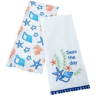 The Lakeside Collection Coastal Themed Embroidered Kitchen Towels, Set of 2 -