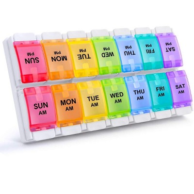 Maison Products Weekly Pill Organizer: 2 Times a Day, 7-day travel box, AM/PM large case with rotatable handle.