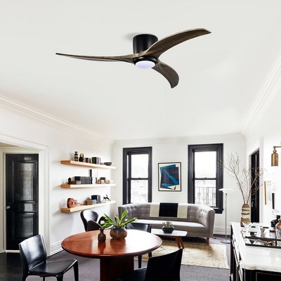 Whisen 52" Downrod Mount Solid Wood Blades Ceiling Fan, Indoor Outdoor Hanging Reversible Ceiling Fan With 6 Speed Levels