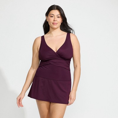 Lands' End Women's Slender Suit Tummy Control Wrap Tankini Swimsuit Top