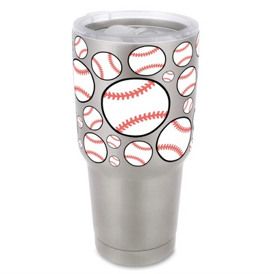 100 North 30 Ounce Stainless Steel On the Go Travel Tumbler With Push Top Lid, Baseball Silver