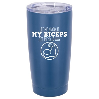 100 North 20 Ounce Stainless Steel On the Go Travel Tumbler With Push Top Lid, Biceps in Your Way Blue