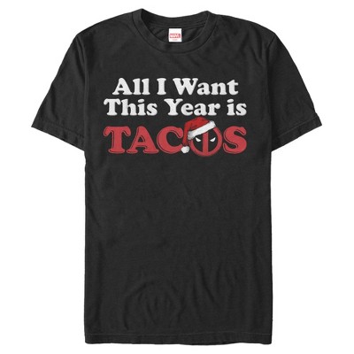 Men's Marvel Christmas Deadpool All I Want is Tacos T-Shirt