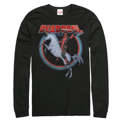 Men's Marvel Deadpool Rides Unicorn Long Sleeve Shirt