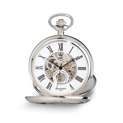 Black Bow Jewelry Charles Hubert Chrome Finish Brass w/Shield Pocket Watch