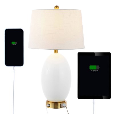 26.5" 1-Outlet Reese Iron/Glass Table Lamp with USB Charging Port (Includes LED Light Bulb) - JONATHAN Y