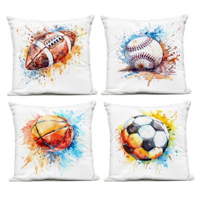 Stupell Industries Modern Splash Sports Balls 4pc Outdoor Decorative Throw Pillow Set, 18 x 18 Each