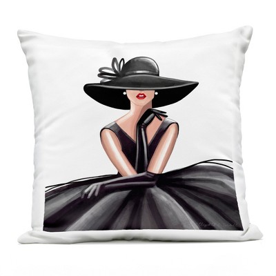 Stupell Industries High End Fashion Glam Pose Luxurious Black Dress Outdoor Decorative Throw Pillow, 18 x 18