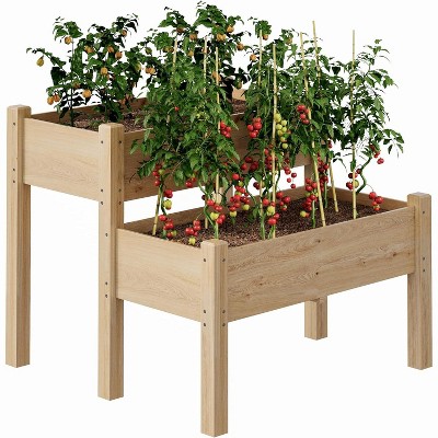 Two-Tier Wooden Raised Garden Bed Legs Large Elevated Planter Box 8 Drainage Holes 352 Lbs Capacity for Vegetables Herbs Flowers Backyard Patio Deck