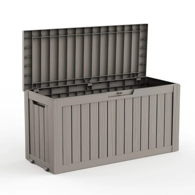 120 Gallon Outdoor Deck Box, Water-Resistant Resin Storage Box with Lockable Lid for Patio