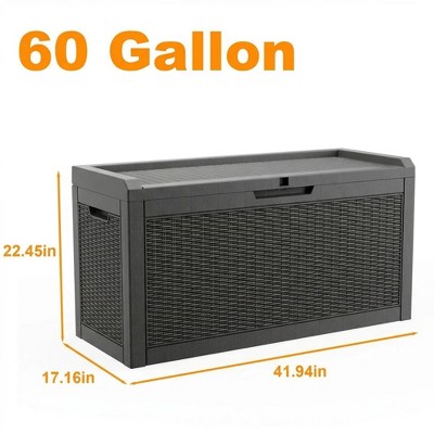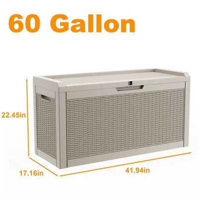 60 Gallon Outdoor Deck Box, Water-Resistant Resin Storage Box with Lockable Lid for Patio