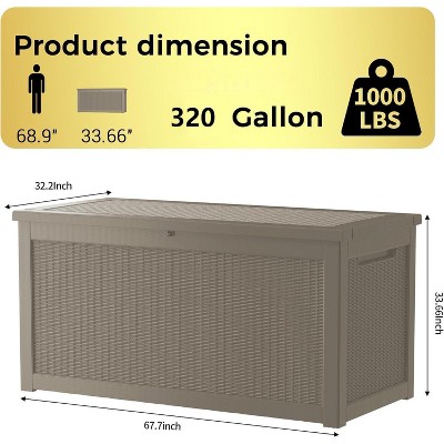 200 Gallon Outdoor Storage Deck Box, Wicker Patio Storage Box with Lid, Flip Top Storage Bench, Storage Bin for Cushion Garden Tool Pool Supplies