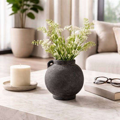 Round Bulbous Jug with Handle Vase for Living Room Decor - Terracotta Pottery Flower Vase for Home Decor - 8", Black