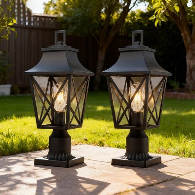 Outdoor Post Light 2-Pack, Black Lamp Post Lantern with Clear Glass, Pier Mount Base, Hardwired Waterproof Light for Garden, Patio, Pathway