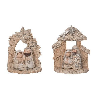 Transpac Shining Nativity Figurine Set of 2 Christmas Home Decorations Resin Decorative Objects for Holiday Cheer