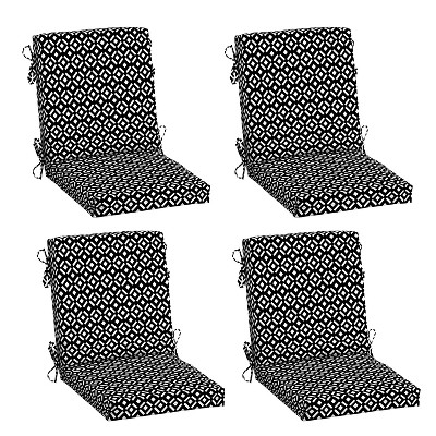 ARDEN 4-Pack Outdoor Patio Dining Chair Cushion, 20x44, Rain-Proof Seat Pad, Fade-Resistant Outdoor Cushion Black Demi Tile
