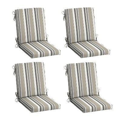 ARDEN 4-Pack earthFIBER Outdoor Patio Dining Chair Cushion, 20x44, Rain-Proof Seat Pad, Fade-Resistant Outdoor Cushion Taupe Grey Boardwalk Stripe