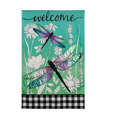 Evergreen Dragonflies and Wildflowers LInen House Flag 28 x 44 Inches Outdoor Decor for Homes and Gardens
