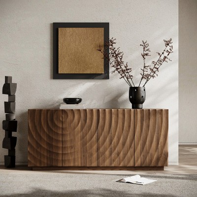 59" Modern Spiral Sideboard Buffet Cabinet, Low Profile Art Entryway Storage Cabinet with 3D Ripple Texture Doors - Panipeachy