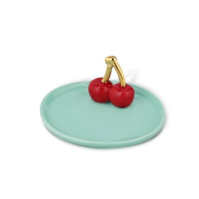 Trinket Teal Dish with Cherry - Bullseye's Playground™