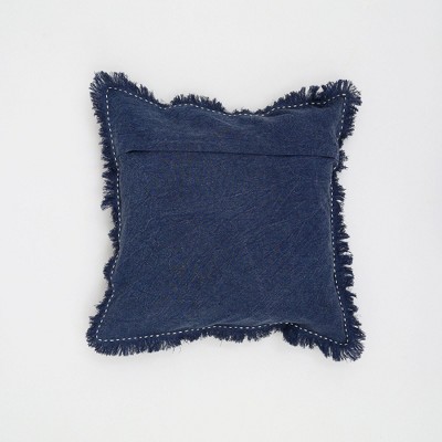 CAVINAS Stonewashed Linen Throw Pillows with Fringe,22" Square Couch Pillows with Handcrafted Edge,Artisanal Decorative Pillows for Couch,Bed