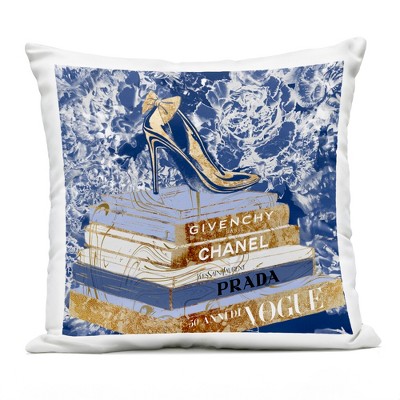 Stupell Industries Designer Glitz Heel on Books Fashion Glam Blue Printed Decorative Throw Pillow Outdoor Decorative Throw Pillow, 18 x 18