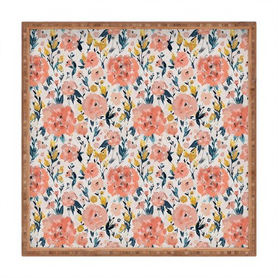 alison janssen Tropical Coral Floral Square Bamboo Tray - Deny Designs