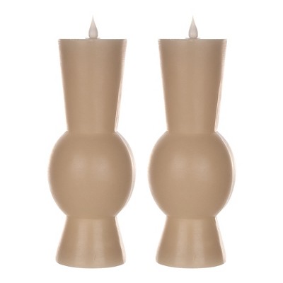 LED Flameless Candle Set Of 2 With Moving Flame 10.25 Inch Height For Indoor Lighting Grey By Melrose