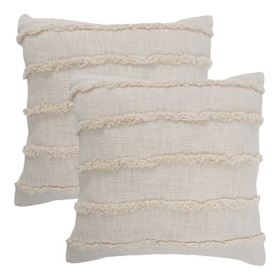 HomeRoots Set of Two Beige Ribbed Cotton Throw Pillow With Fringe