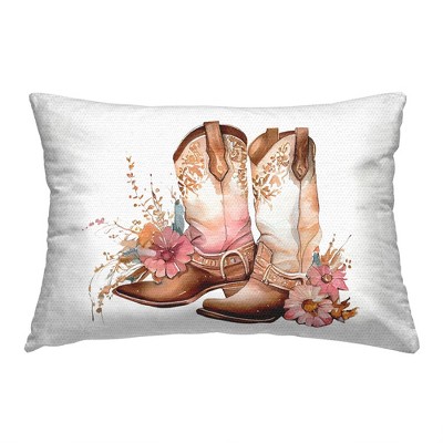 Stupell Industries Soft Floral Cowgirl Boots Outdoor Decorative Throw Pillow, 14 x 20
