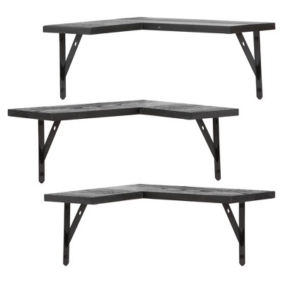 Corner Shelf Set of 2 Black Honeycomb MDF, metal 9.8x9.8x1.5 in