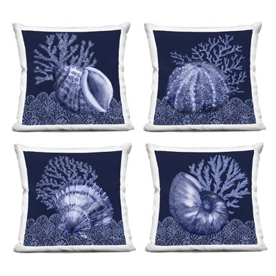Stupell Industries Indigo Nautical Seashells 4pc Indoor Decorative Throw Pillow Set, 18 x 18 Each